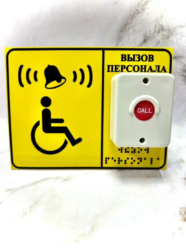 Антивандальная кнопка с шрифтом Брайля (без приемника) Тактильная кнопка с рельефными надписями шрифтом Брайля предназначена для обозначения вызовов помощи, входных групп, лифтов и других зон в учреждениях, адаптированных для людей с нарушениями зрения. Ключевые особенности: ✔ Прочный антивандальный корпус – износостойкий пластик или металл ✔ Тактильная маркировка – рельефные символы Брайля и пиктограммы ✔ Универсальное крепление – подходит для дверей, стен, поручней ✔ Водо- и пылезащита (IP54 и выше) ✔ Совместимость с большинством систем вызова Применение: Обозначение кнопок вызова персонала Маркировка лифтов, санузлов, входных дверей Оснащение объектов доступной среды (больницы, МФЦ, ТЦ) Технические параметры: ◾ Материал: ударопрочный ABS-пластик / нержавеющая сталь ◾ Размеры: 80×80 мм / 100×100 мм (стандарт) ◾ Цвет: желтый (контрастный для слабовидящих) ◾ Варианты надписей: «Вызов», «Помощь», «Лифт» и др. Преимущества: 🔹 Соответствует ГОСТ Р 52875-2018, СП 59.13330 🔹 Устойчива к механическим повреждениям и погодным условиям 🔹 Четкое тактильное восприятие для незрячих пользователей